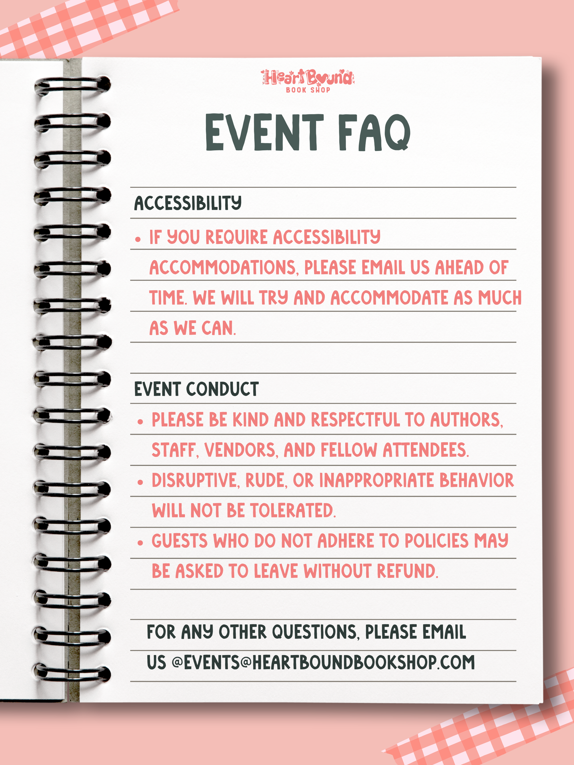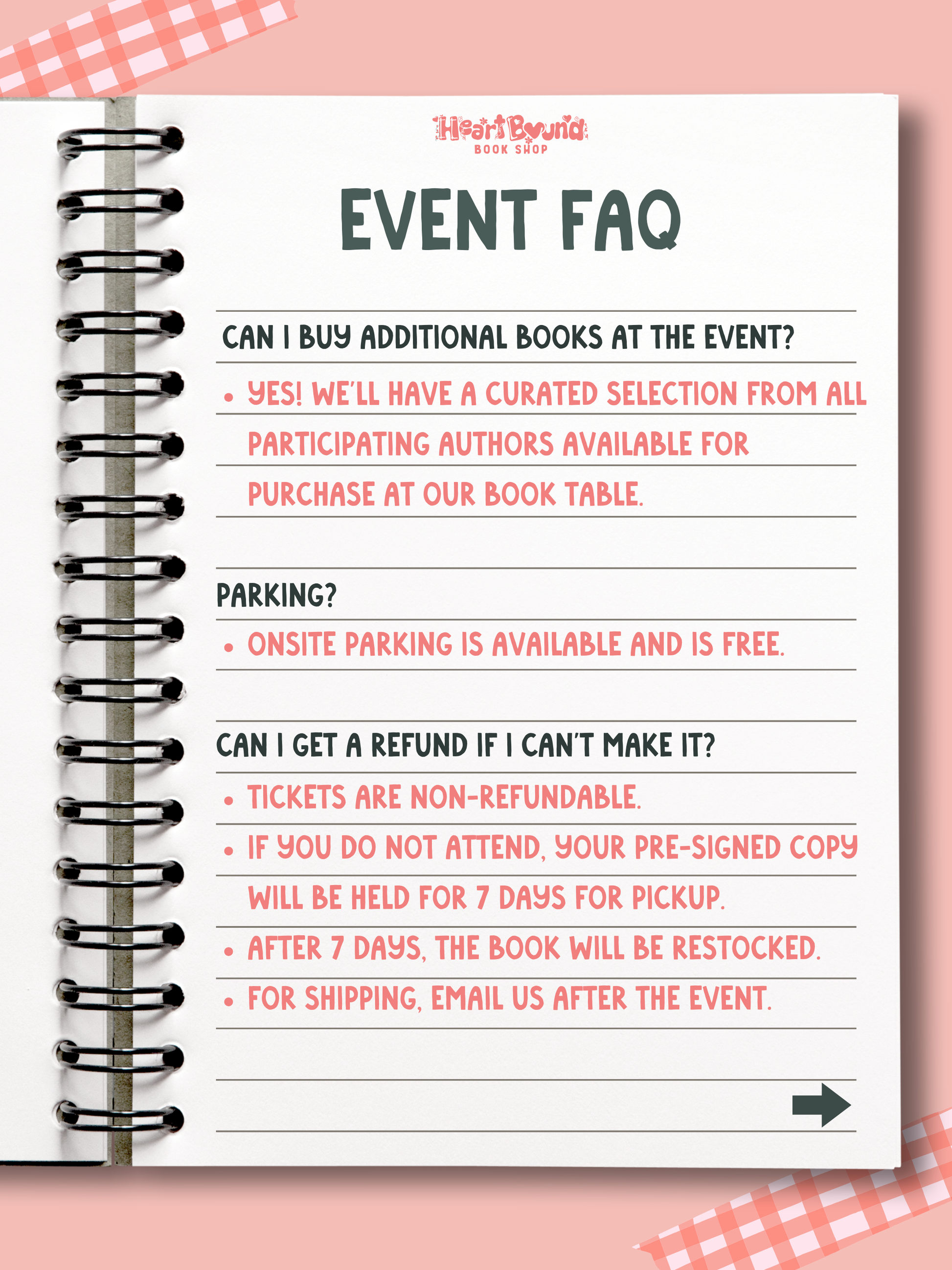 If your order arrives damaged or is incorrect, please reach out to us at orders@heartboundbookshop.com within 7 days of receiving your order. We're committed to resolving any issues promptly and ensuring your satisfaction. However, please note that damages incurred during shipping or lost packages are beyond our control. In such cases, a claim will need to be filed directly with the shipping carrier.