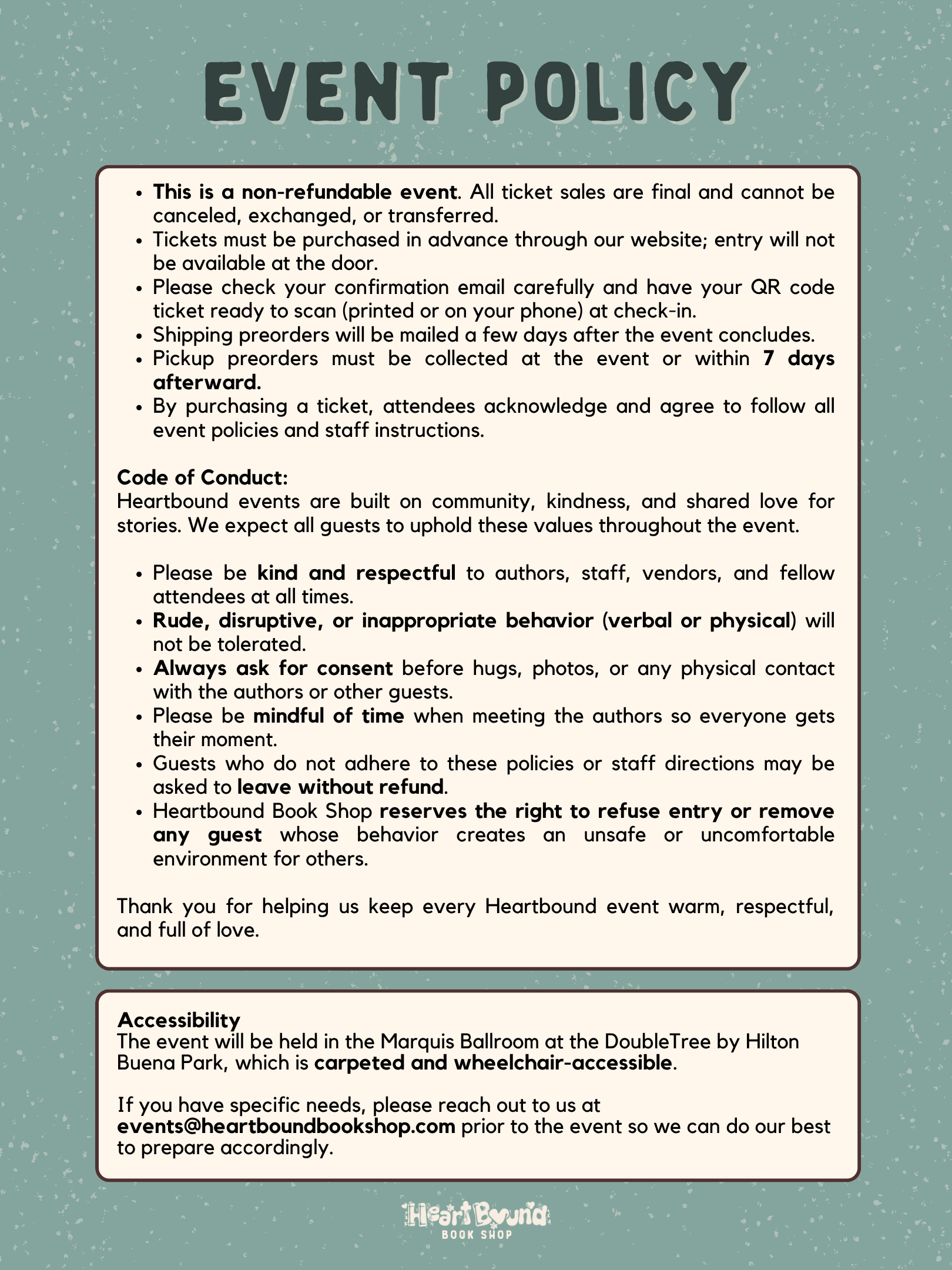 Please note: This is a non-refundable event. Tickets cannot be canceled or transferred once purchased.